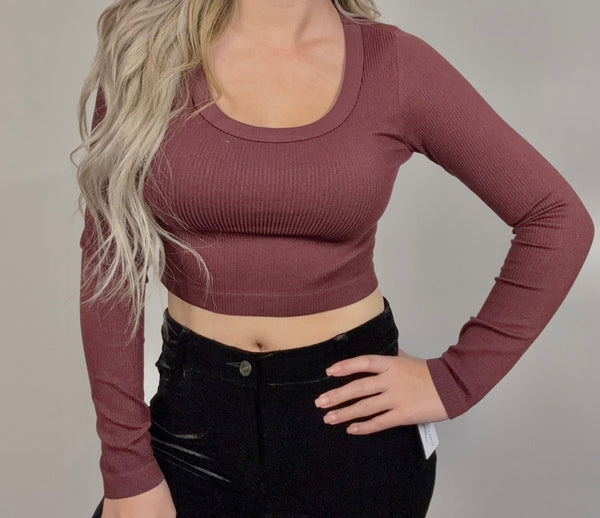 SCOOP NECK LONG SLEEVE SWEATER KNIT CROP TOP