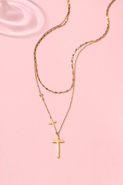 Our jewelry is crafted from high-quality 18K stainless steel and enhanced with a durable PVD coating. This advanced surface treatment gives the jewelry a beautiful, long-lasting finish that resists tarnishing, scratches, and fading, ensuring it retains its shine and color for years to come. Layer of Cross Necklace, this necklace features a series of delicate cross-shaped pendants suspended along the chain.