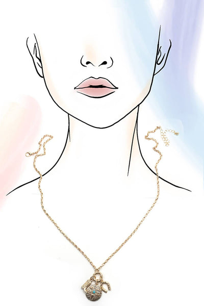 Bold cluster charm necklace celebrates Western style with intricately designed charms, including a cowboy boot, a lucky horseshoe, and a striking bull. Suspended from a sturdy chain, these charms embody rustic charm and adventurous spirit, making it the perfect accessory for Western enthusiasts.