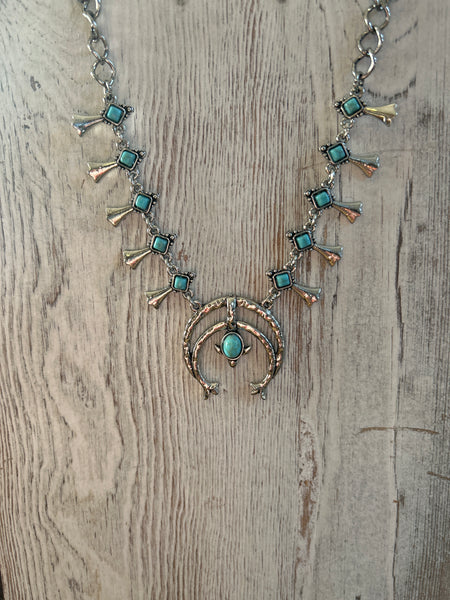 These are perfect for the little princess in your life.  Squash blossom on a mini level with the same great detail in moms necklace.  Squash blossoms on the side and a larger blossom in the center.