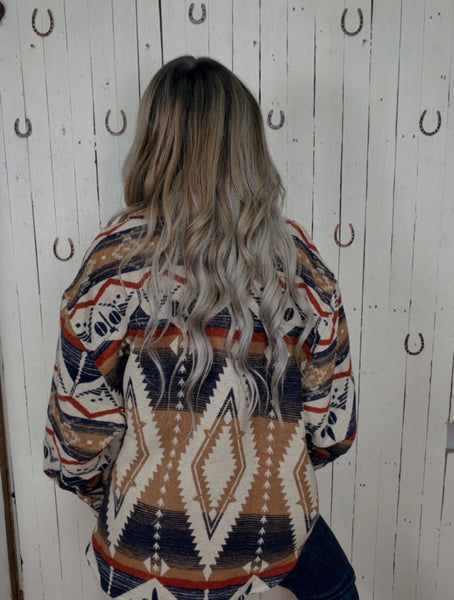 Oat/ Navy Oversized Shacket